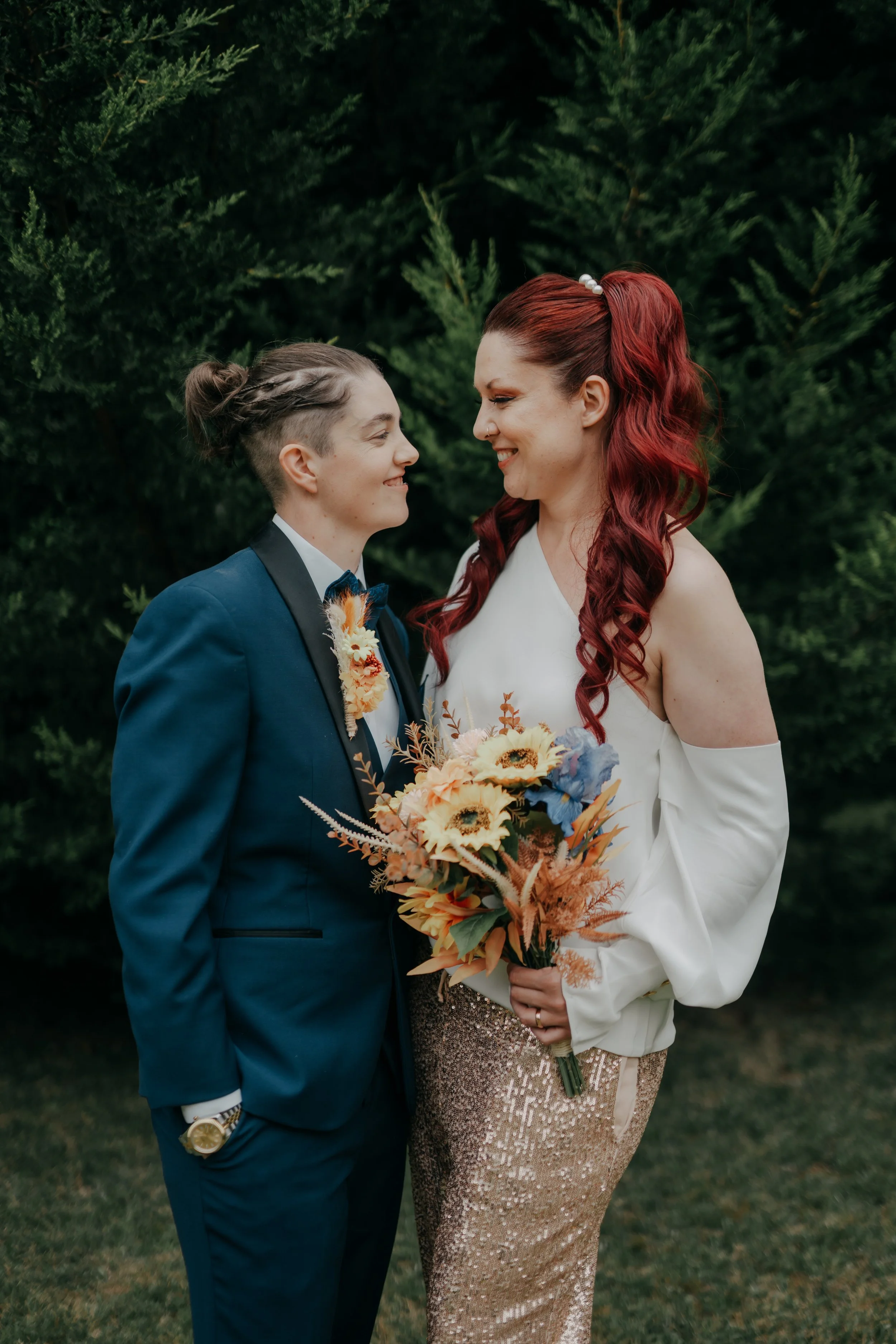A couple of years later, and it was Sierra's turn to propose to Jac! The pair enjoyed a relaxing afternoon at the spa then shared a luxurious dinner at a popular restaurant in city. Upon sunset, they made their way to the docklands to watch a drone show, where they would “bump” into their best friend (Sierra's accomplice) whose job was to secretly record the proposal. Jac was surprised and happily so! Sierra also made a special mix of their favourite songs to dance to, and dance they did!After years of growing, laughing and building a life together, they were married in 2023. As a proud lesbian couple, their love story is one of friendship, support, pride and choosing each other every single day.